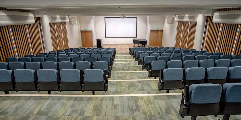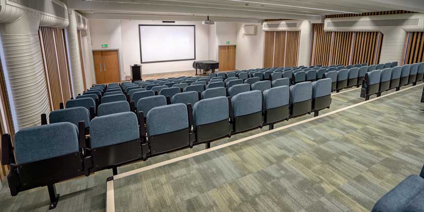 The project included a full refurbishment of The Abbey Schools lecture theatre.Works consisted of the installation of new lighting, high-end seating, air-conditioning and AV equipment. It was finished with new floor finishes and redecorated to give it a contemporary look. The project was part of the schools re-development masterplan and works were completed during the School Summer Holidays in 2018.