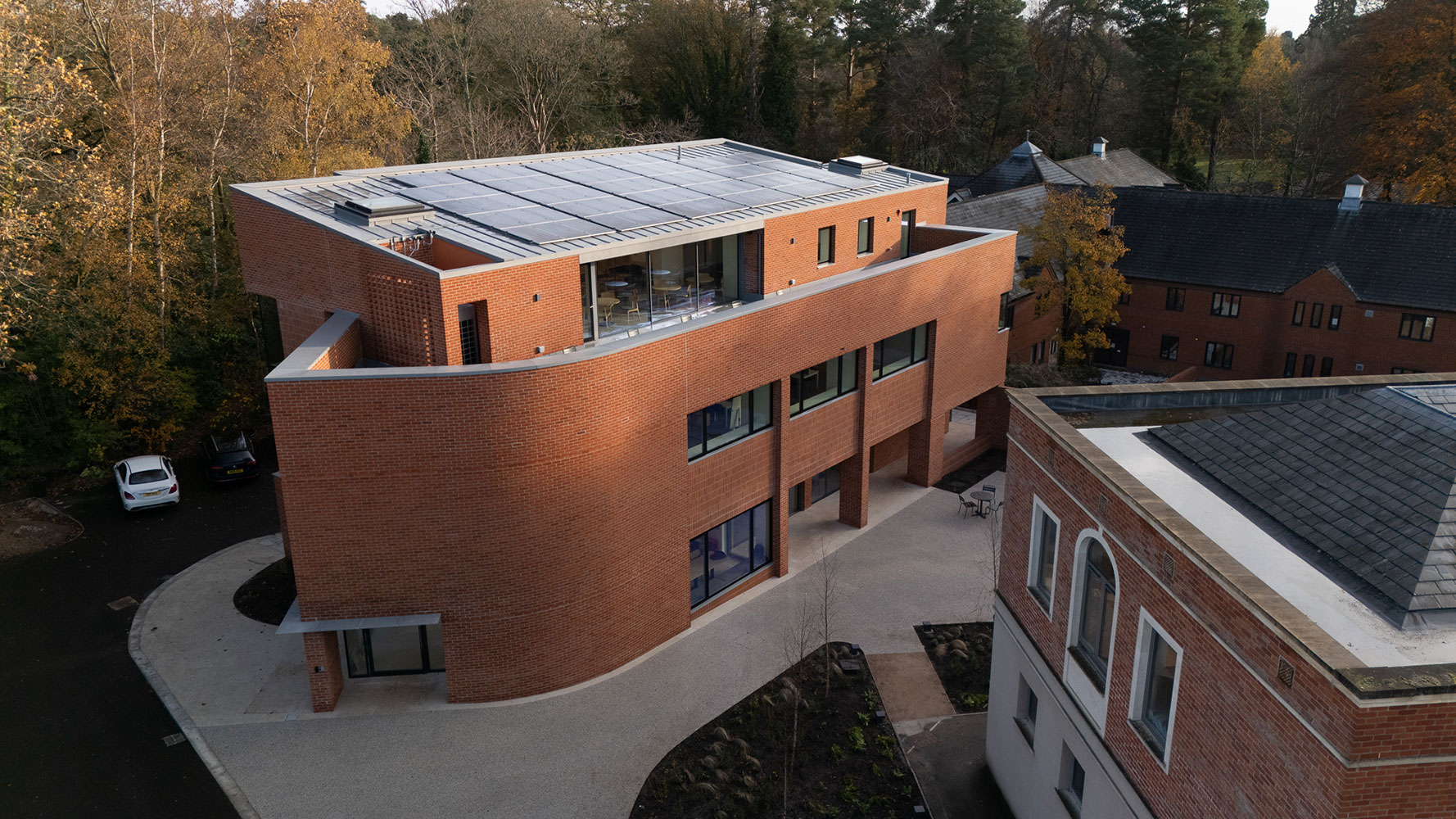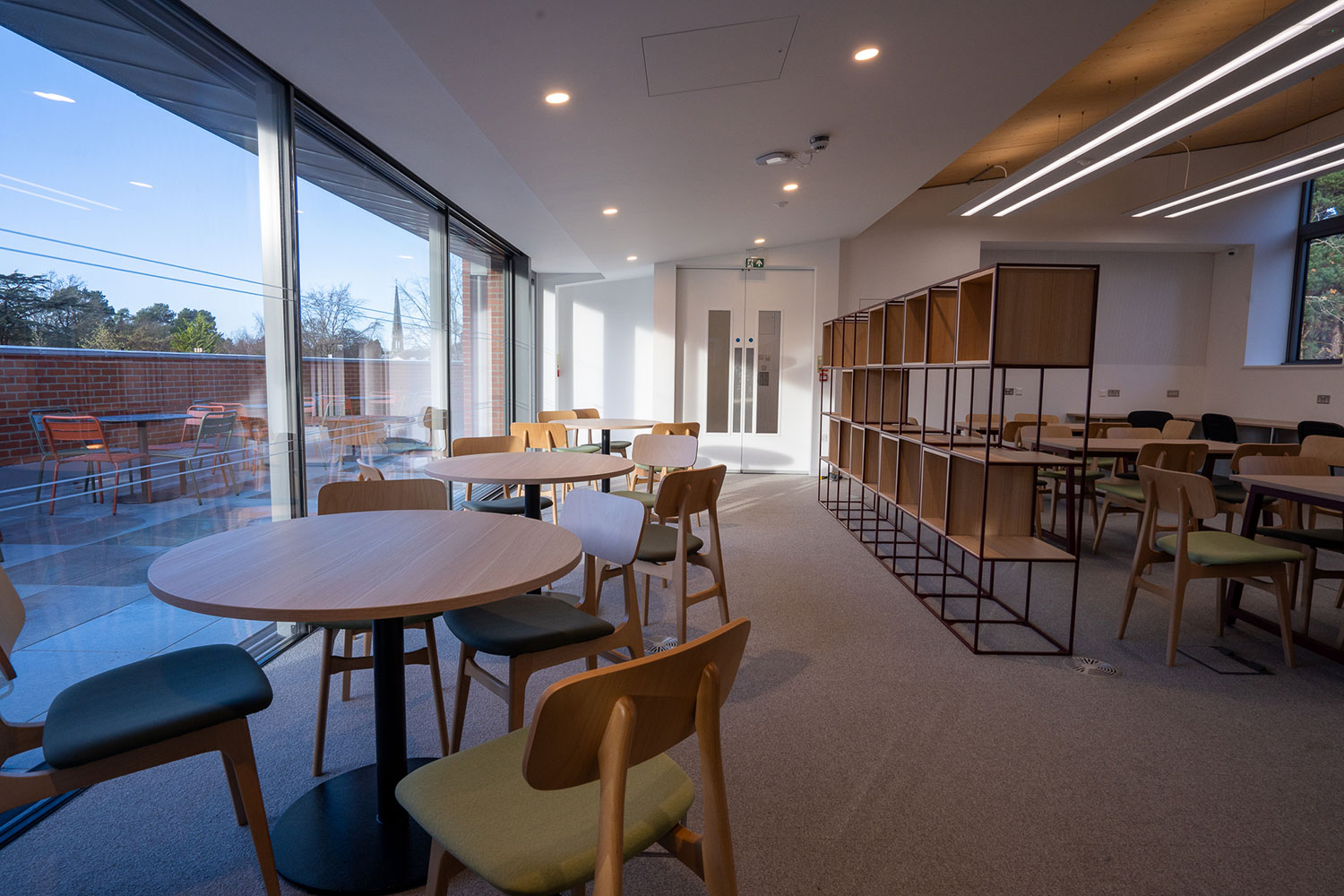 The building provides flexible teaching rooms, dedicated study and social spaces, and integrates seamlessly with the campus, balancing contemporary design with the College’s historic setting.