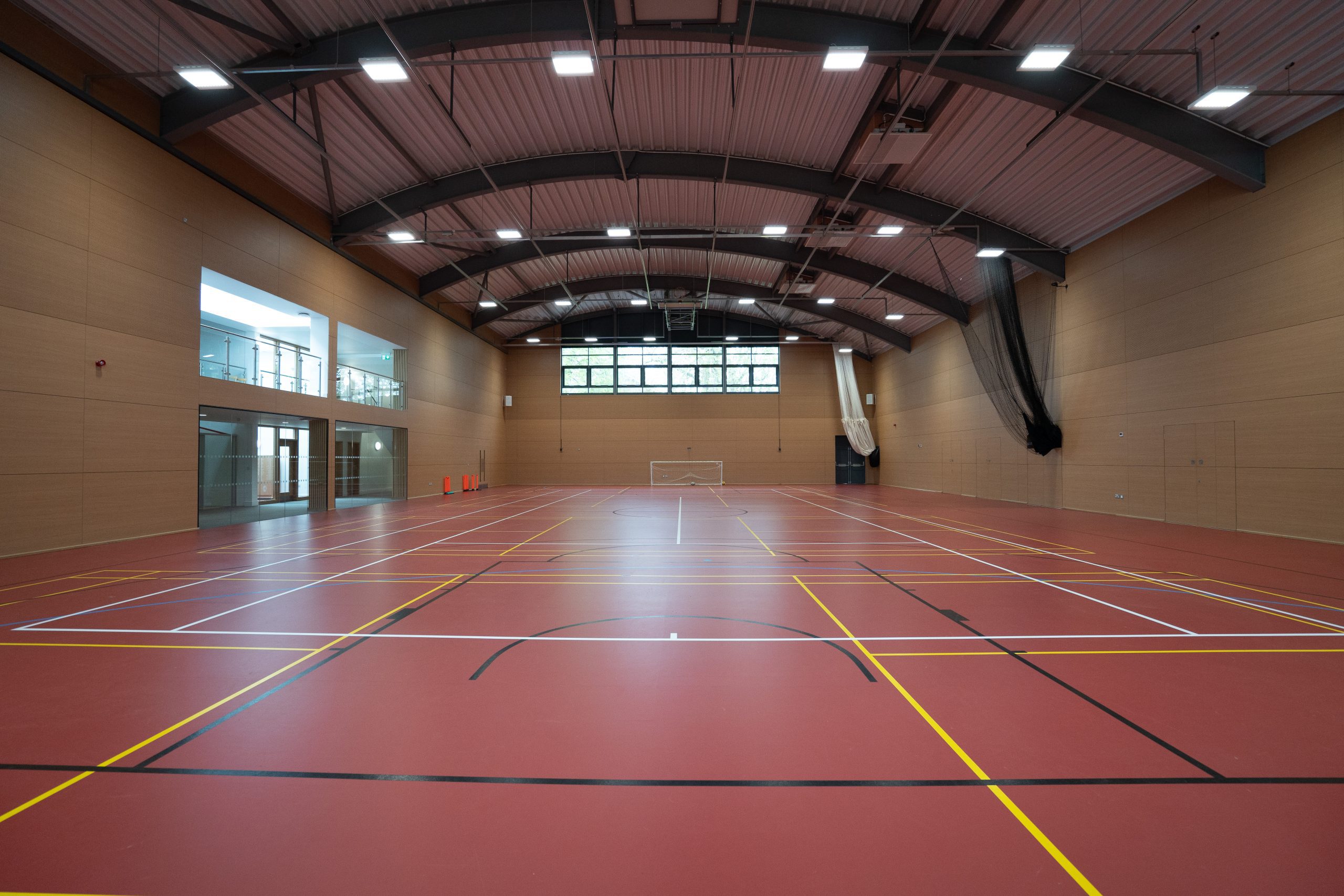 The new facility provides both large and small multi-use sports halls, complemented by high-quality climbing apparatus, expansive squash courts, and dedicated dance studios, all supported by modern changing areas to serve pupils and staff alike.